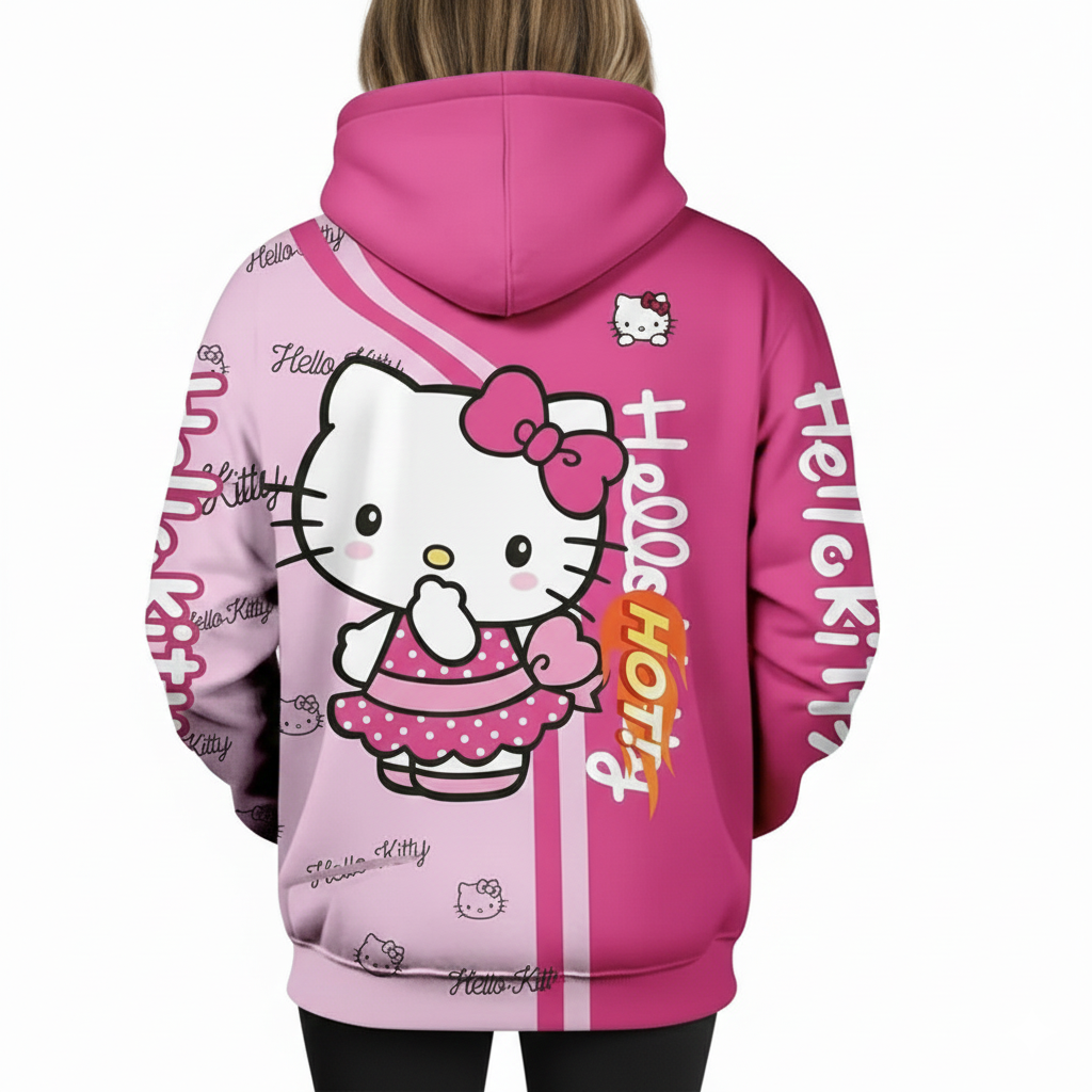 Make a bold statement with this vibrant Hot Pink Hello Kitty 3D Print Pullover Hoodie!